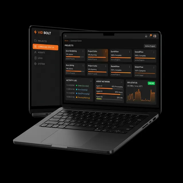 Manage every project from a single, sleek dashboard. Monitor agent activity, track production pipelines, and launch new projects in seconds.